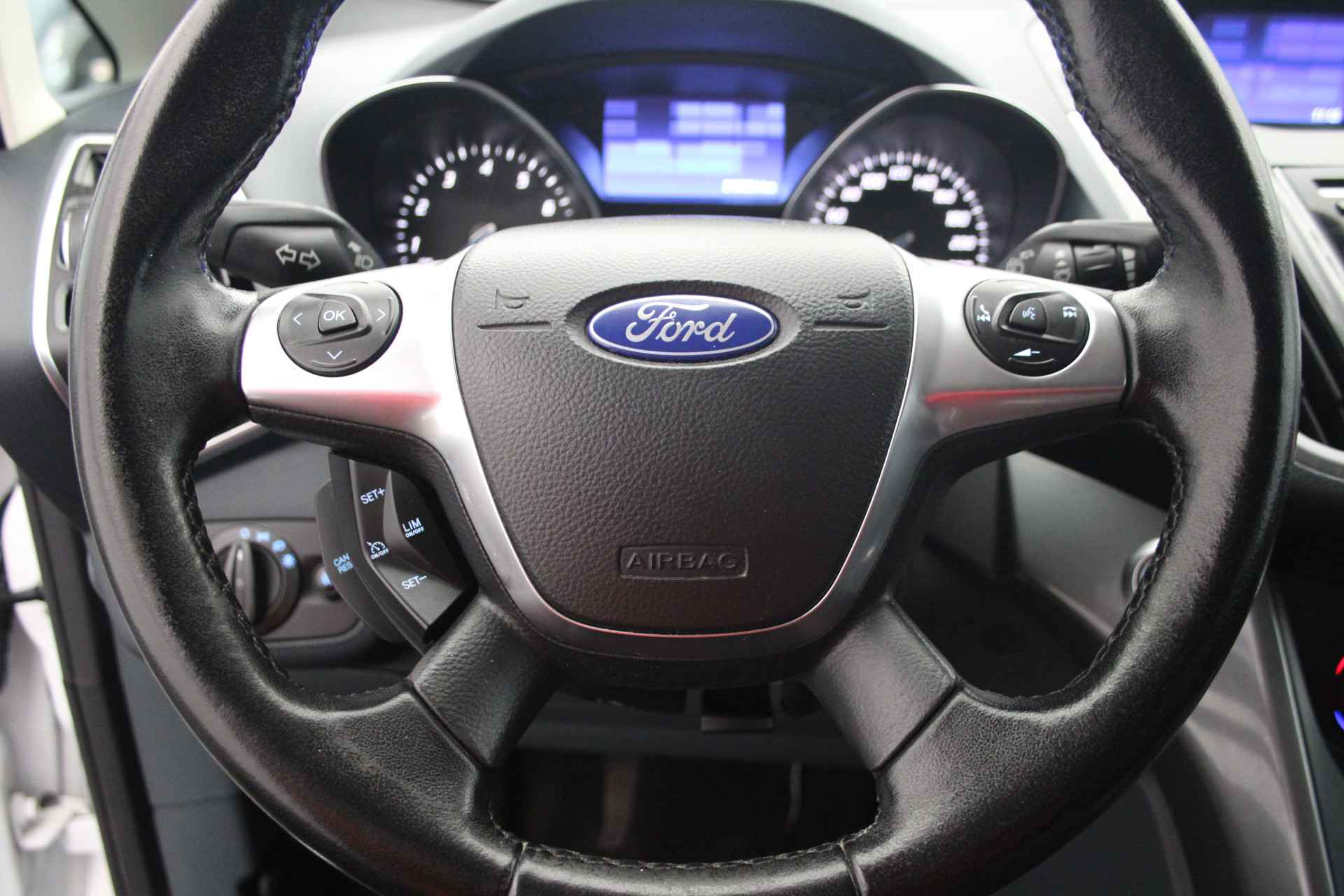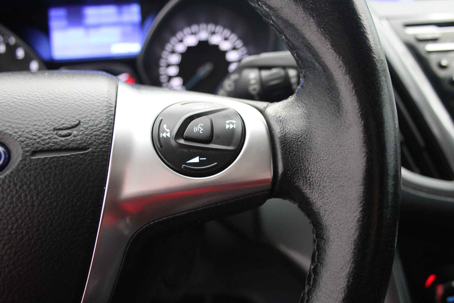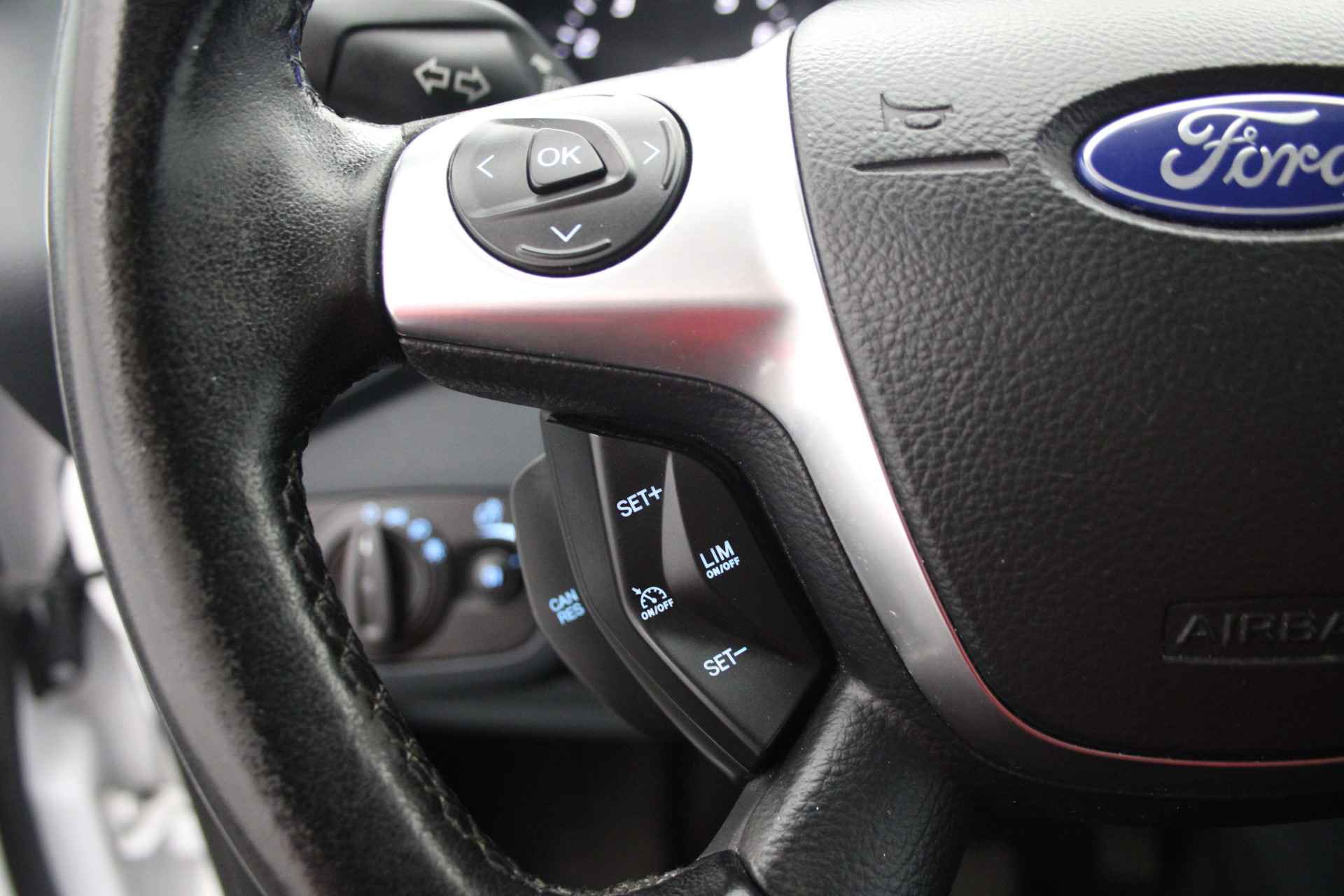 De hoogwaardige achteruitrijcamera en het display met hoge resolutie zorgen dat helemaal niets u meer ontgaat van wat er achter de auto gebeurt. Altijd een deskundige gids aan boord, dankzij het navigatiesysteem. Het spreekt voor zich dat een auto als deze ook van automatische airconditioning is voorzien. Een andere zender zoeken of het volume wijzigen? Het audiosysteem heeft bediening op het stuur. De elektronische systemen in deze Ford helpen u actief om comfortabeler te rijden. Een automatisch inschakelbare verlichting en een regensensor houden de omstandigheden onderweg in de gaten. Natuurlijk behoren cruise control, automatisch dimmende binnenspiegel, lederen stuur, isofix-aansluiting, centrale deurvergrendeling met afstandsbediening en bagage afdekhoes ook tot de uitrusting van deze complete auto.