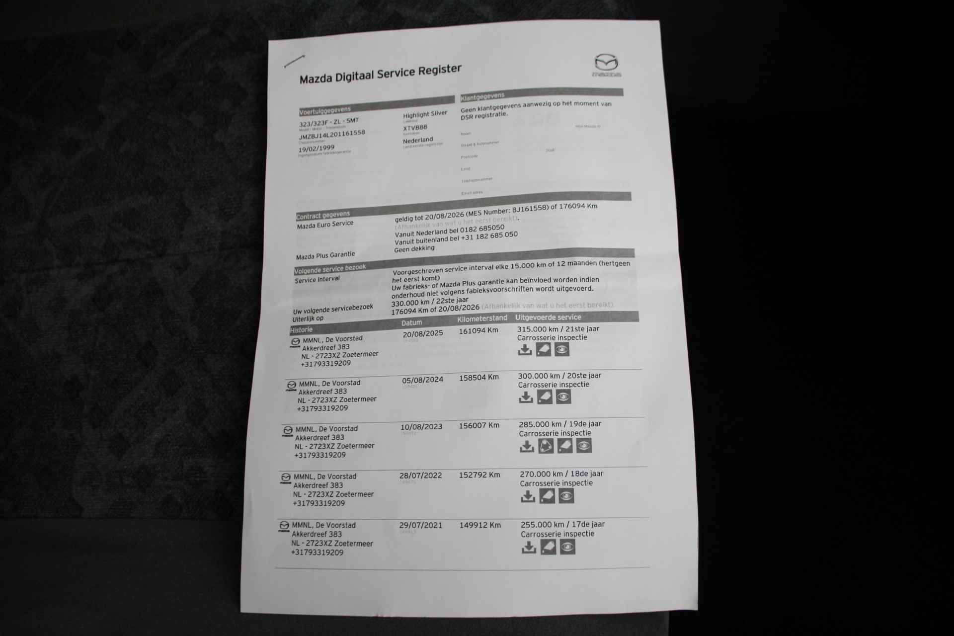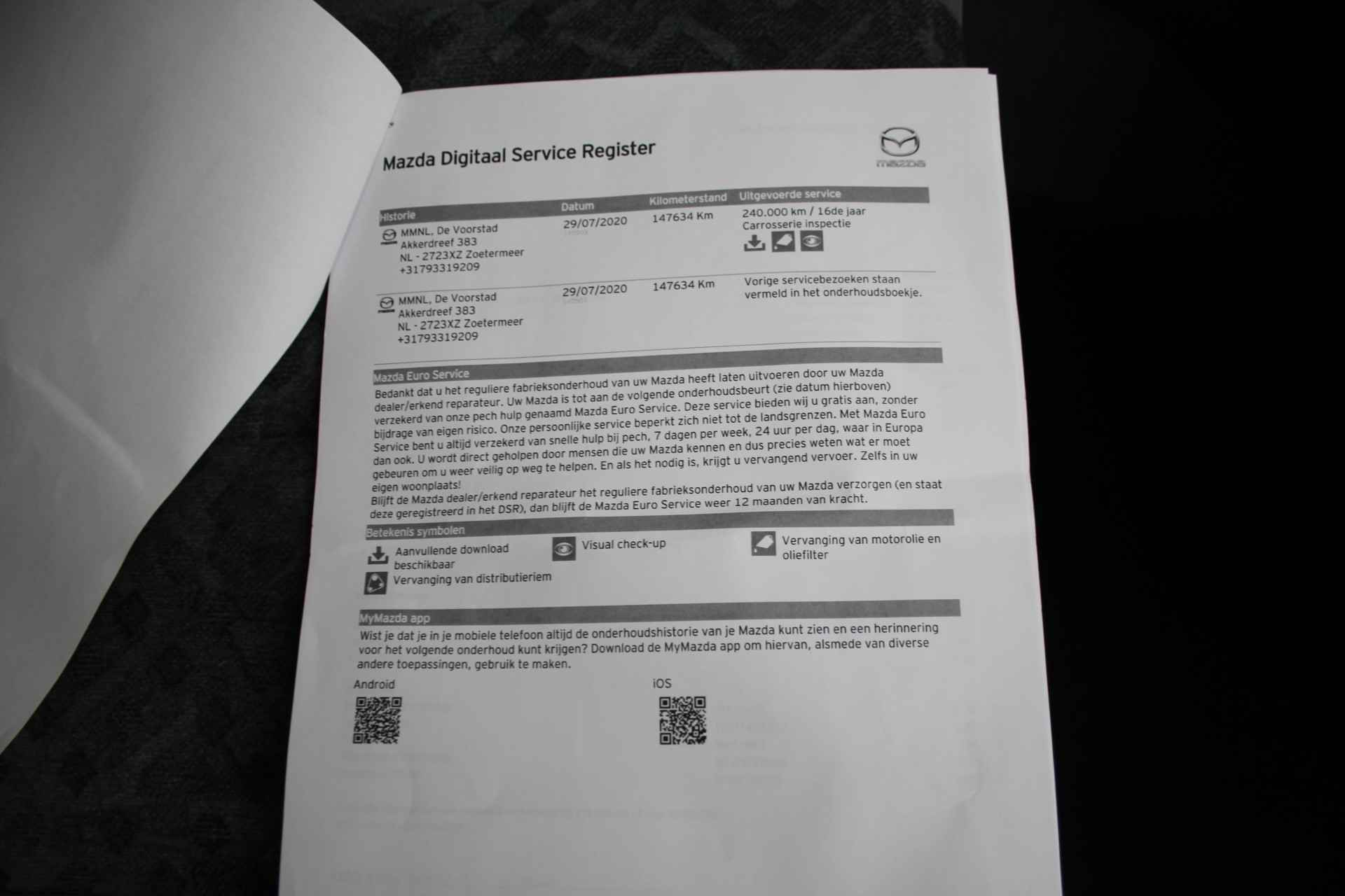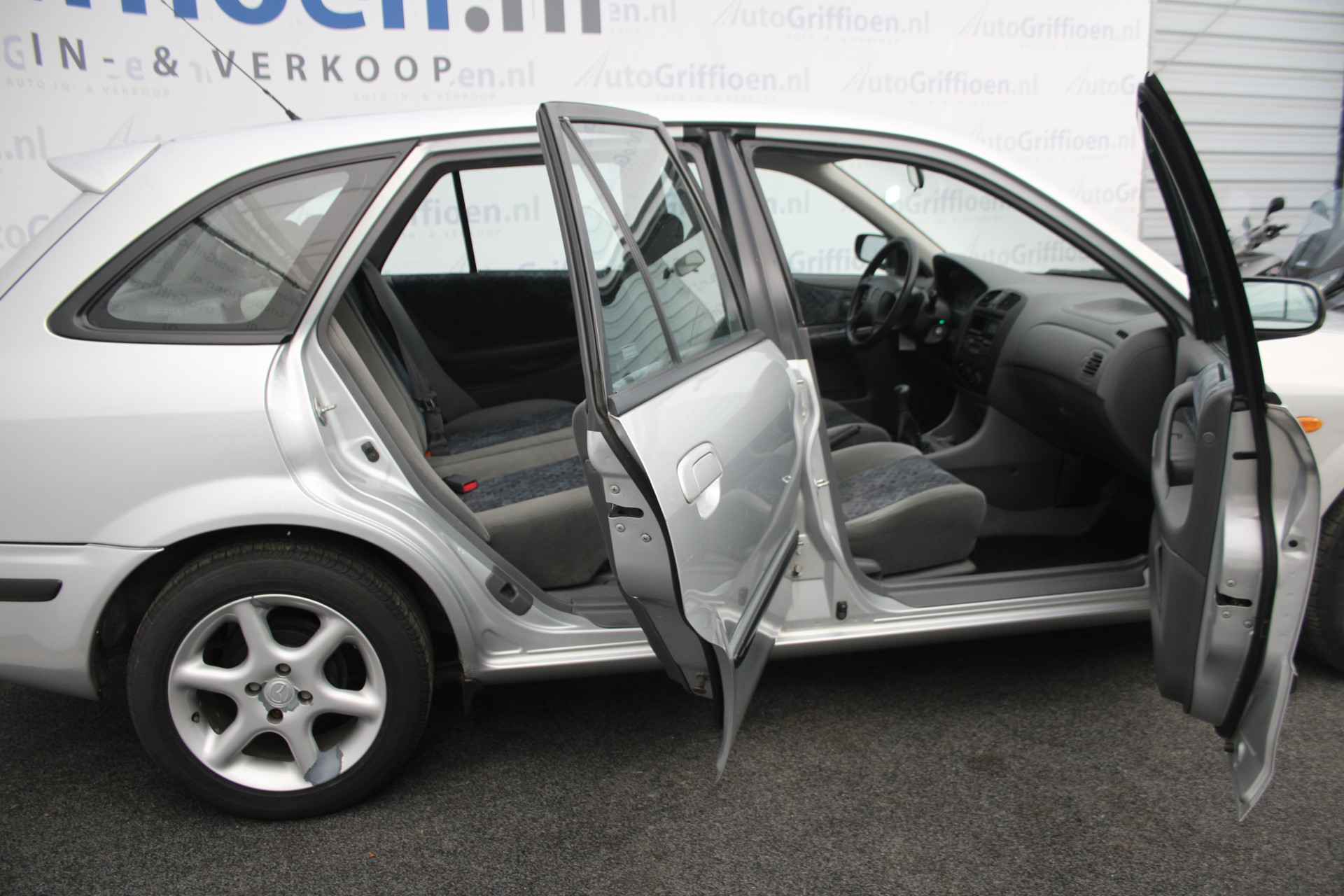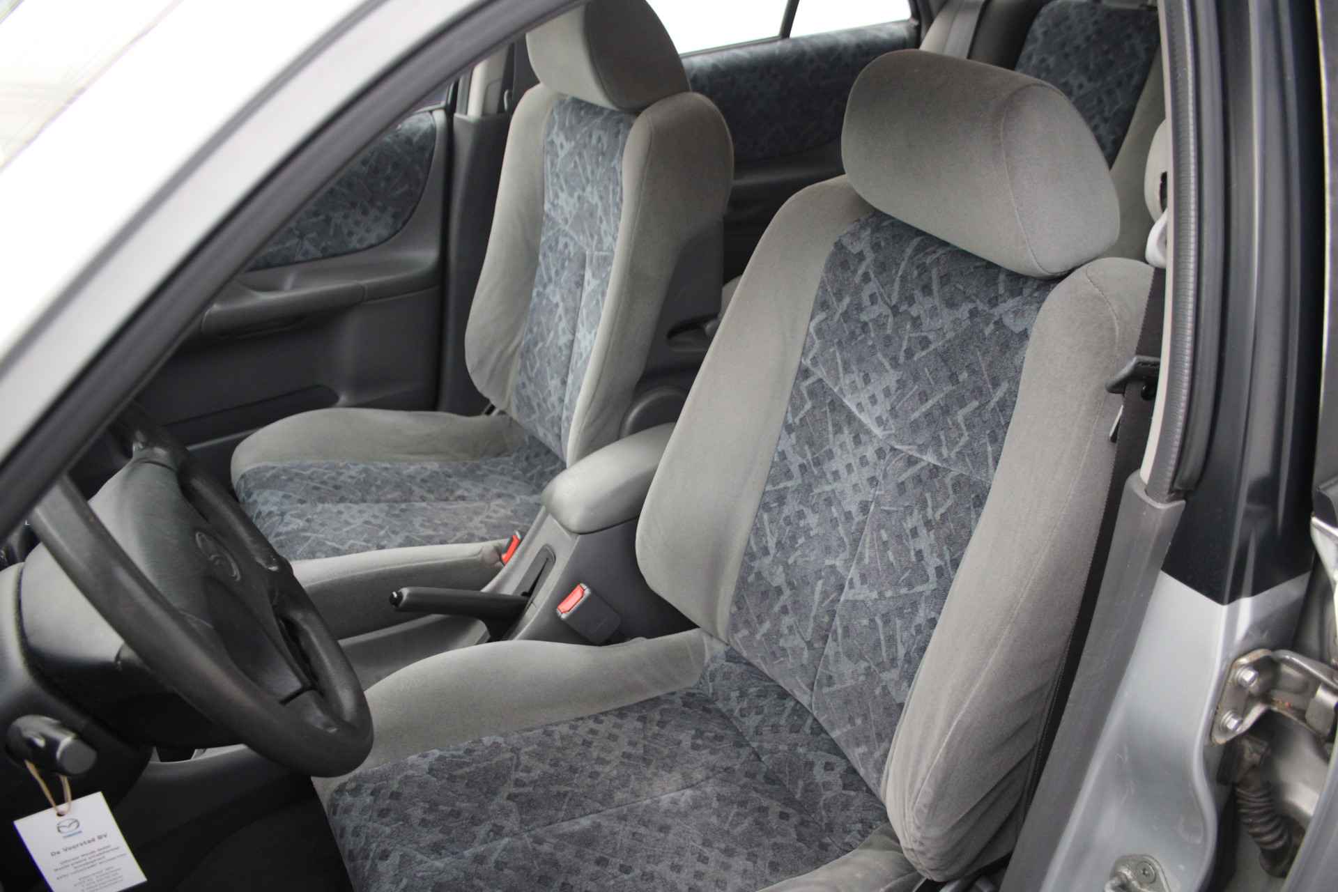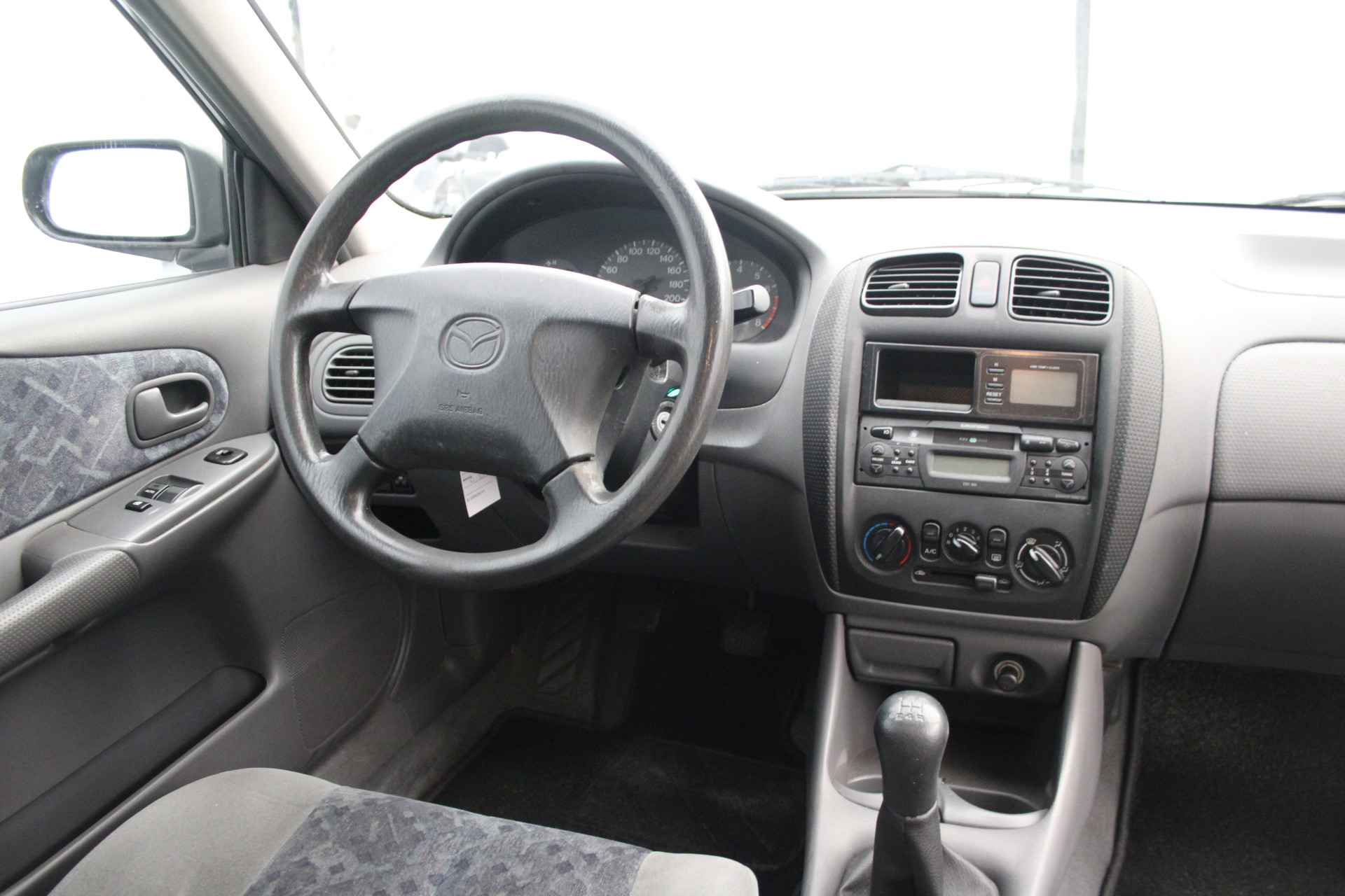 En natuurlijk is er ook gedacht aan airconditioning. Ook is de Mazda uitgerust met: buitentemperatuurmeter, centrale deurvergrendeling met afstandsbediening, toerenteller en verstelbaar stuur.