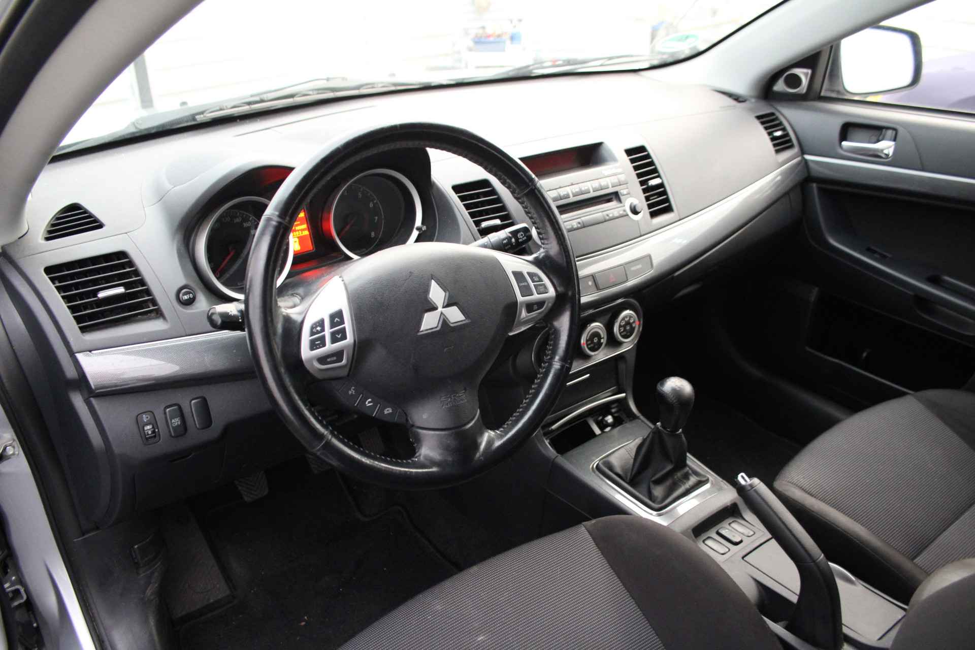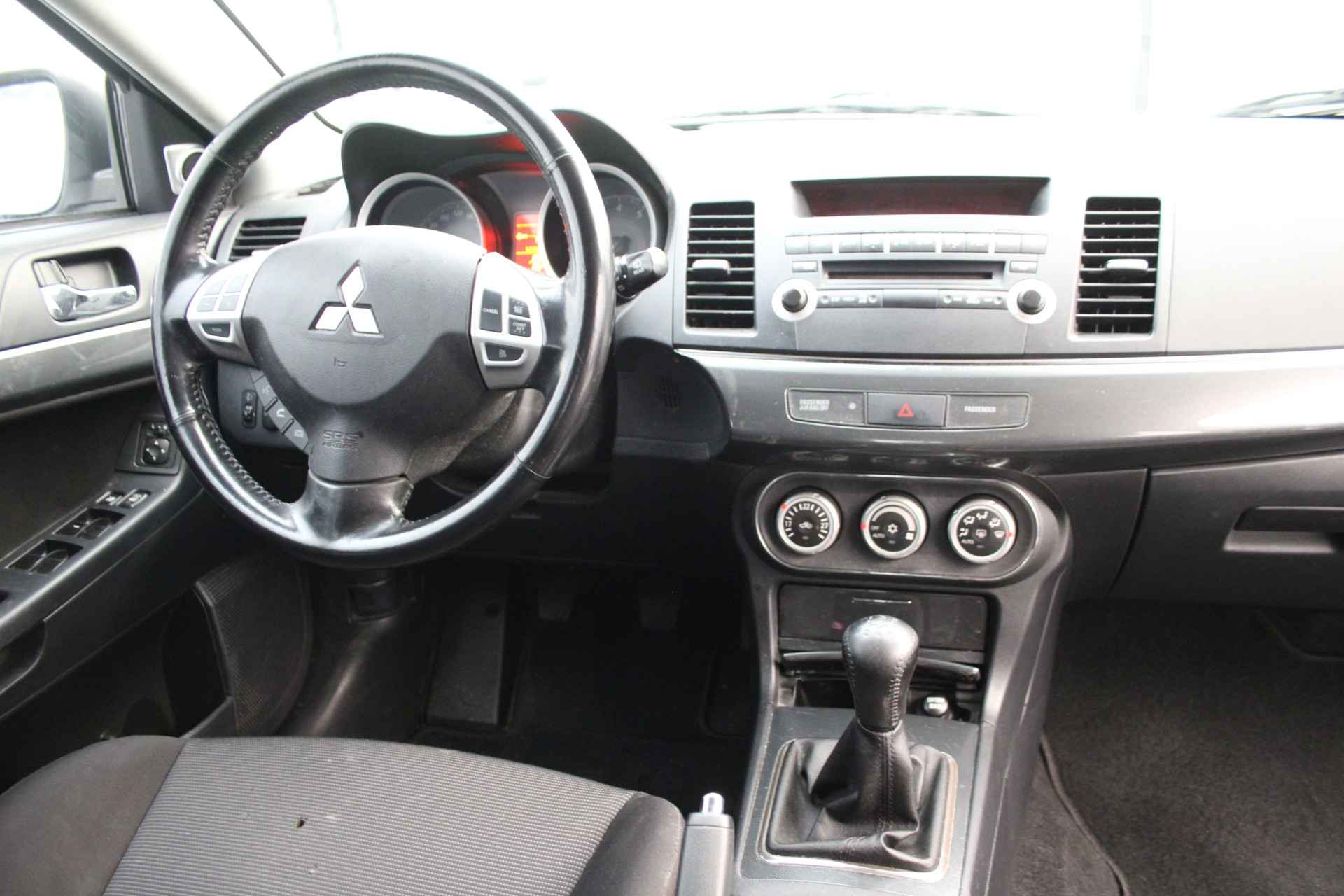 Automatische airconditioning regelt volautomatisch de temperatuur. U kiest de gewenste temperatuur en het systeem doet de rest. Met een druk op de knop verandert u het volume of het zenderstation met de audiobediening op het stuurwiel. Boem is ho? Niet bij deze Mitsubishi Lancer Sportback. De piepjes van de parkeersensoren waarschuwen u op tijd voor obstakels. De automatisch inschakelbare verlichting en regensensor zorgen dat onderweg automatisch de verlichting en de ruitenwissers worden ingeschakeld. Daarmee nemen ze u veel werk uit handen. Maximumsnelheid? Even de cruise control instellen en u blijft perfect binnen de marges. Met keyless entry, lederen stuur, isofix-aansluiting, centrale deurvergrendeling met afstandsbediening, boordcomputer en lederen versnellingspook is deze Mitsubishi helemaal compleet.