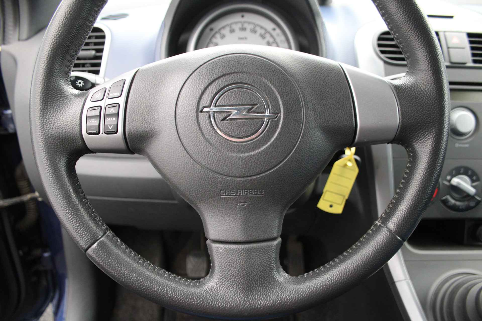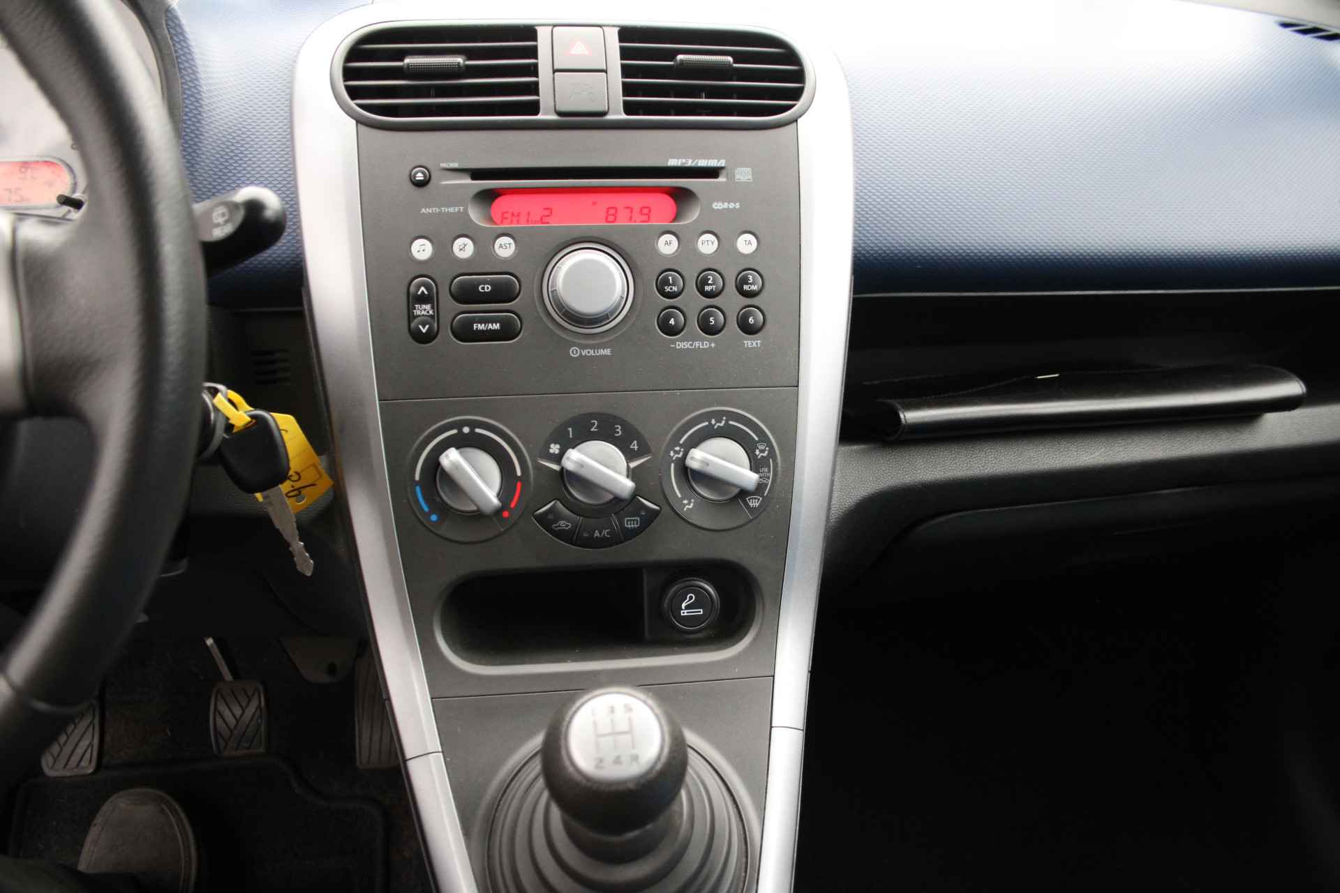 Laat u onderweg niet afleiden, de bediening van het audiosysteem gaat met knoppen op het stuur. Ja, airconditioning is er natuurlijk ook in deze auto. Ook lederen stuur, isofix-aansluiting, centrale deurvergrendeling met afstandsbediening en boordcomputer horen tot de voorzieningen op deze auto.