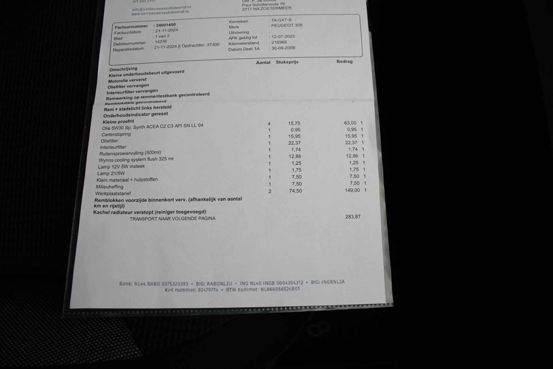 Bij ons is het werkplaatstarief 75 exclusief de BTW per uur.