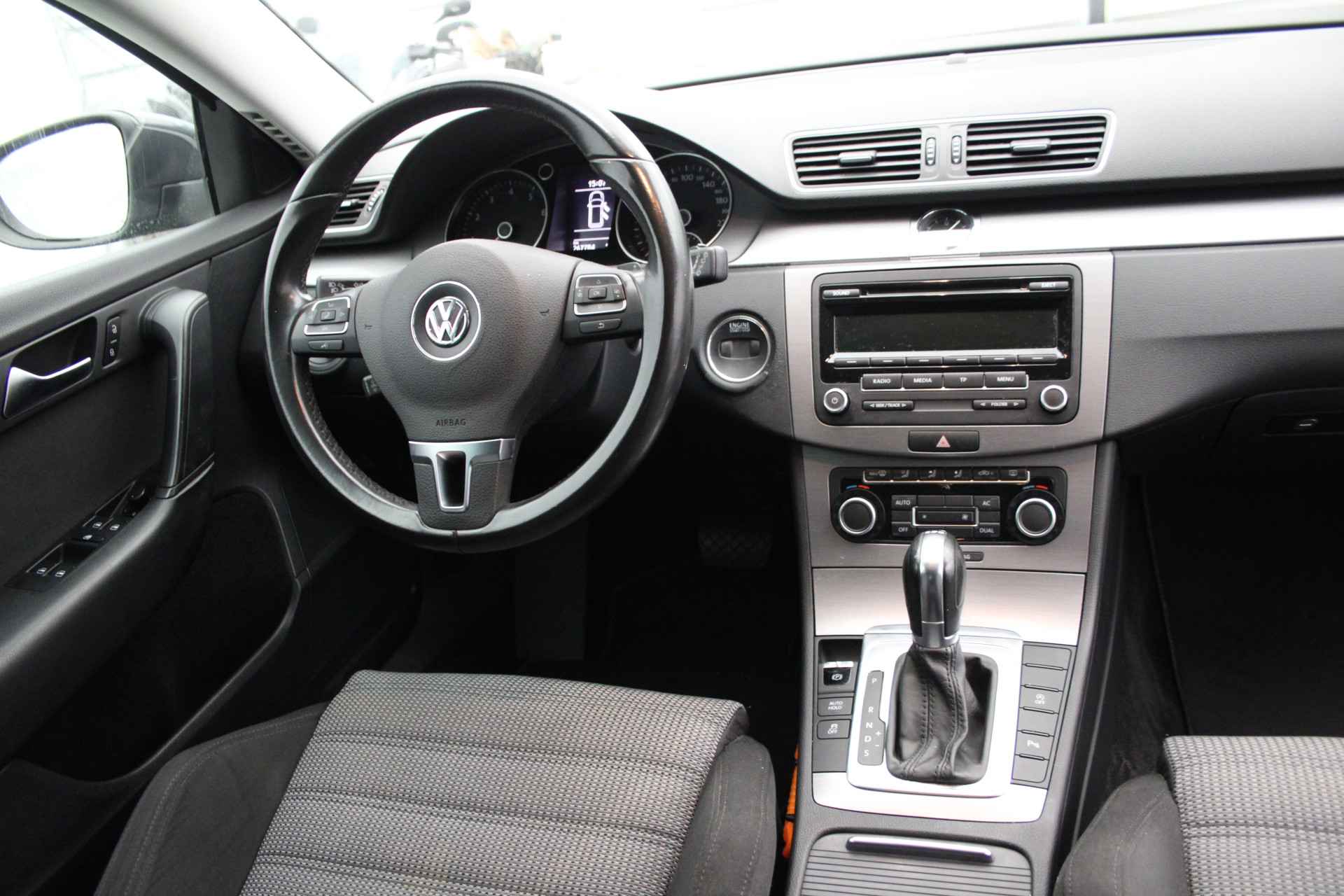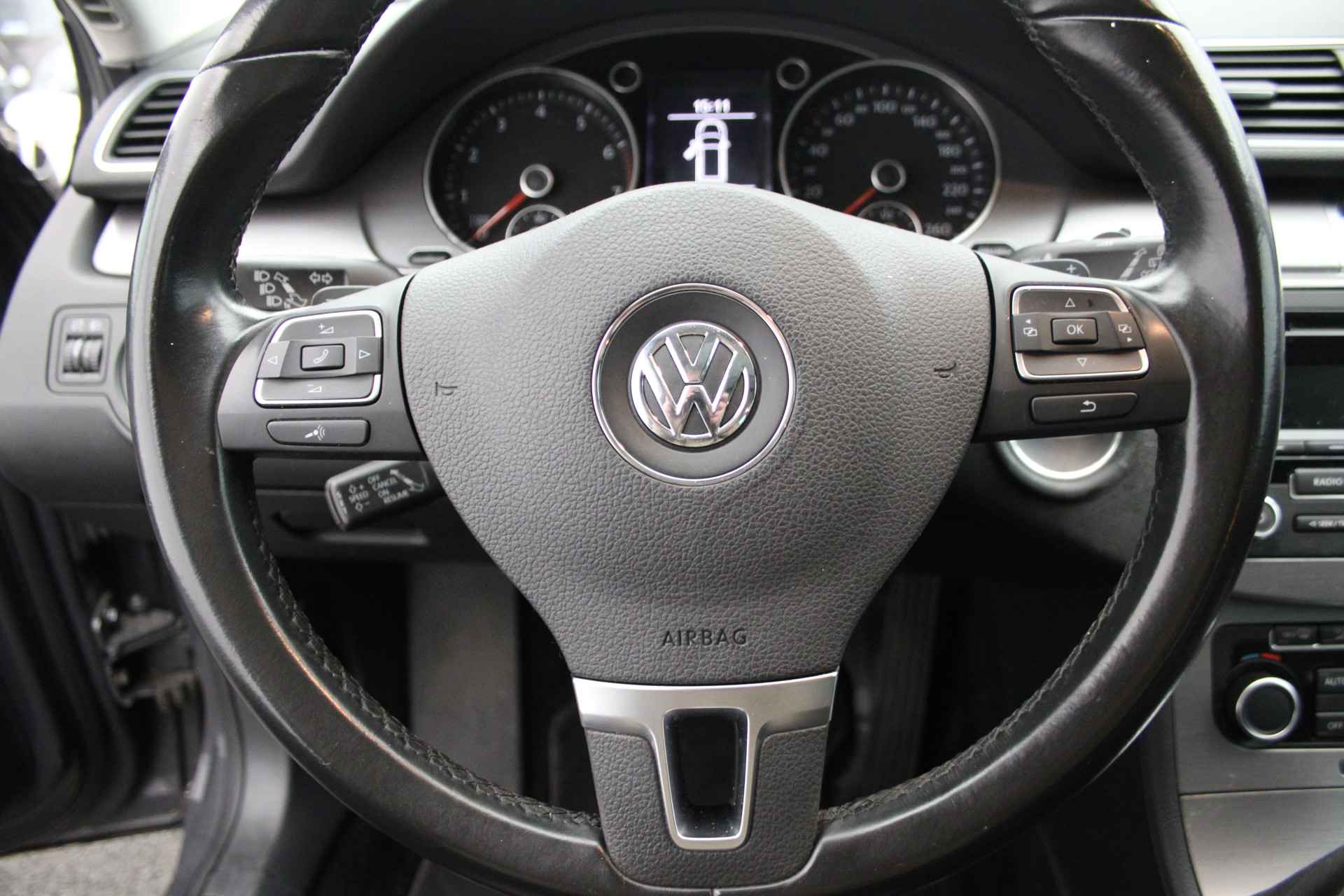 U bedient het audiosysteem via knoppen op het stuur. Zo kunt u steeds uw aandacht gericht houden op de weg. Automatische airconditioning verwarmt of koelt het interieur met een druk op de knop. Parkeersensoren helpen u tijdens het in- en uitparkeren. Deze Volkswagen Passat Variant is voorzien van een regensensor, zodat de ruitenwissers altijd de juiste snelheid hebben. U bedient de cruise control eenvoudig zonder uw handen van het stuur te halen. Deze Volkswagen is voorzien van sportstuur met schakelpaddels, buitentemperatuurmeter, automatisch dimmende buitenspiegels, isofix-aansluiting, centrale deurvergrendeling met afstandsbediening en bagage afdekhoes.